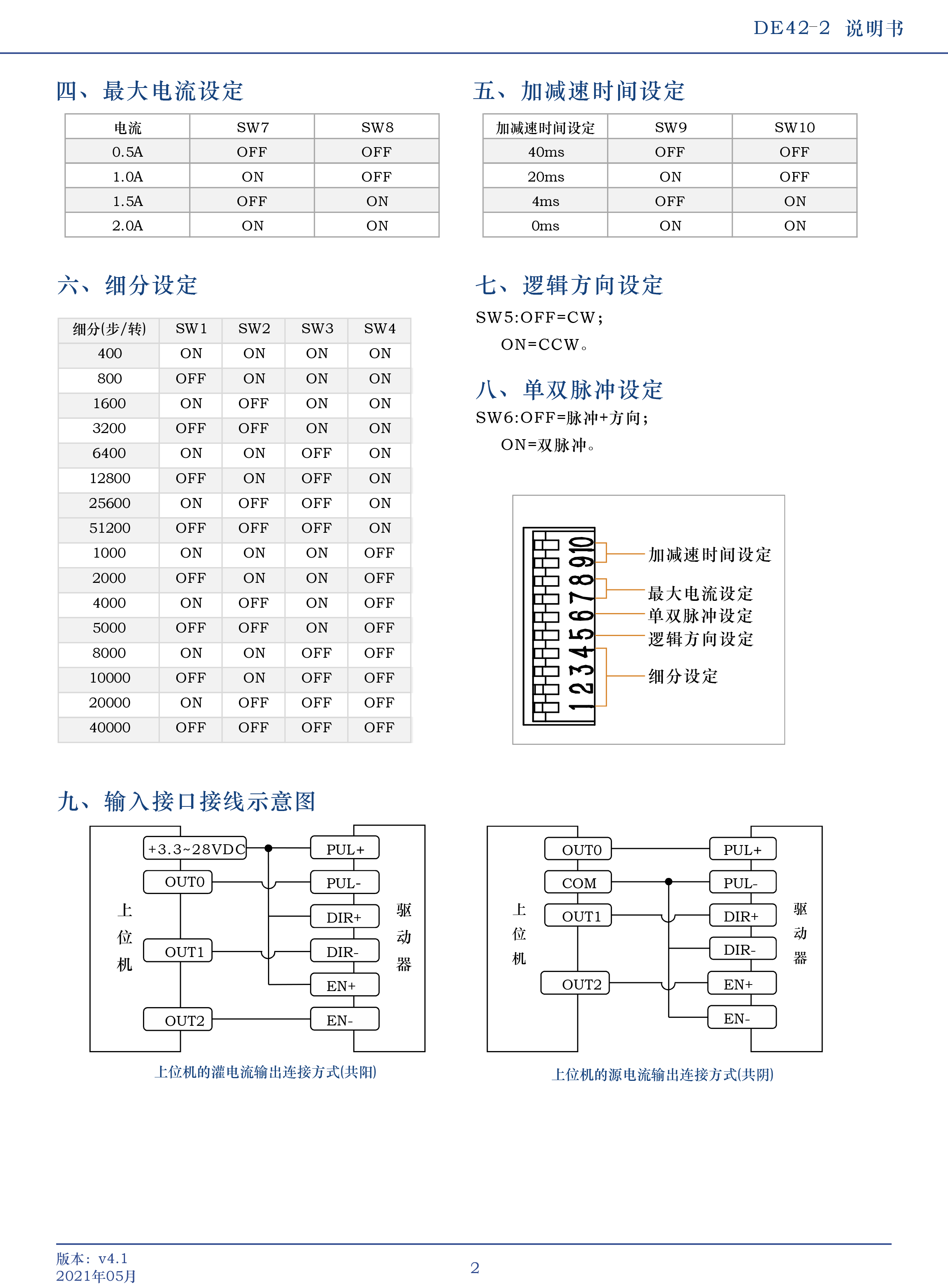 DE42-2 是公司潛心研制的基于新一代基于32位DSP技術(shù)的高性能兩相數(shù)字式步進(jìn)驅(qū)動(dòng)器,驅(qū)動(dòng)電壓DC18V-60V適配電流 2.0A以下,外徑42以下各種型號(hào)兩相混合式1000線閉環(huán)電機(jī)。驅(qū)動(dòng)器采樣類(lèi)似伺服的控制原理,獨(dú)特的電路設(shè)計(jì),優(yōu)越的軟件算法處理,使電機(jī)即使在低細(xì)分下也能運(yùn)行平穩(wěn),幾乎沒(méi)有振動(dòng)和噪音,平滑、精確地電流控制技術(shù)大大減少了電機(jī)發(fā)熱,外置16檔等角度恒力矩細(xì)分,最高可調(diào)細(xì)分51200脈沖/轉(zhuǎn),光耦隔離差分信號(hào)輸入,抗干擾能力強(qiáng),具有過(guò)壓、欠壓、過(guò)流保護(hù)等出錯(cuò)保護(hù)功能。在3C、LED貼片等中、高速應(yīng)用領(lǐng)域,其平穩(wěn)性、振動(dòng)、噪聲性能優(yōu)勢(shì)明顯,可大大提高設(shè)備性能。